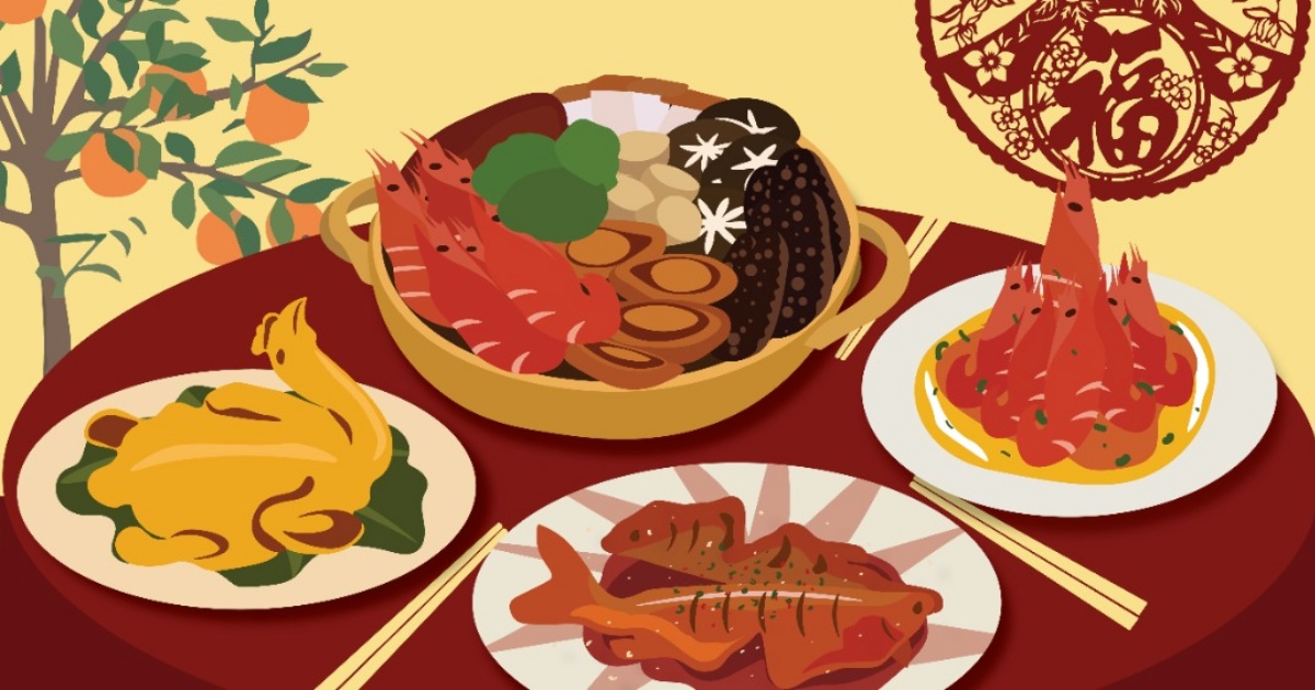 同样地,年夜饭,吃什么菜?各籍贯有各自象征好兆头的年菜,但随著籍贯混杂的婚姻家庭,不变和传承的更多是家里掌厨的(通常是婆婆和妈妈)的拿手“家传菜”。例如我们家,海南家庭,年菜会有掺炒大白菜、粉丝的海南杂菜和海南白斩鸡。又因我妈是吉胆岛巴生人,新年一定会弄一道华贵的清蒸鱼鳔酿肉卷。如今,我妈把这几道年菜做法传授给了我太太(日本人),现由她负责料理。另,团圆饭也不一定满桌山珍海味。认识一位有钱拿督,也是海南人,她们家的年菜一定会有一盘黄梨炒猪皮。说完,年菜的味就在一种维系家族情感的集体记忆,而用传统思维“符号—象征—联想”,年年高升、年年有余,每道年菜都有一个听得讨喜,象征好兆头的菜名。至于号称“新马自创”的捞生,就兴爽在那个“仪式感”。