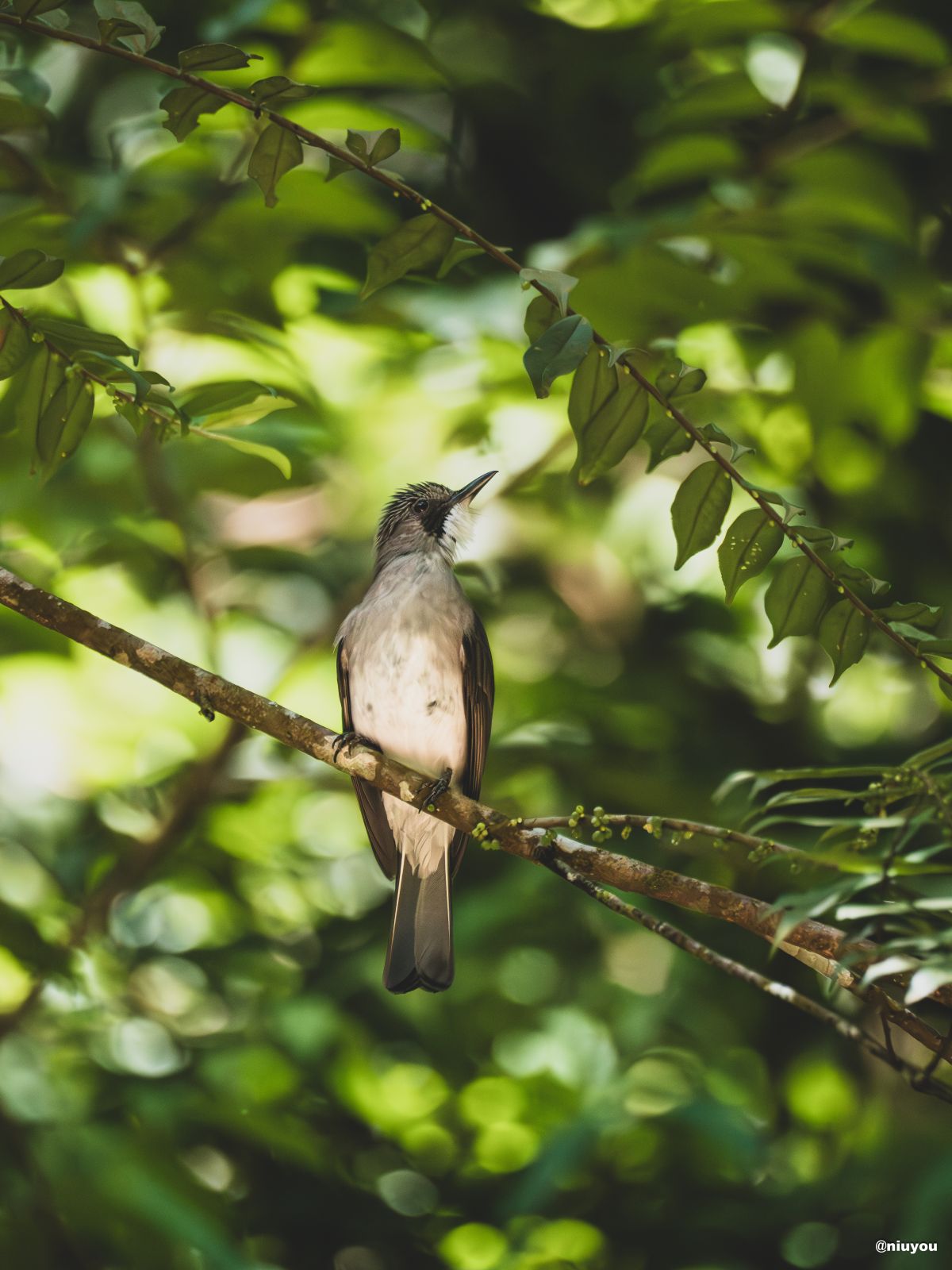 成熟的森林一般没有白眉黄臀鹎生存的空间,在那竞争激烈的雨林秘境之中,纷呈的鹎族诉说的是生物多样性的故事,每种鹎都有自己的特色,小褐鹎眼圈一抹橘黄色,像是戴了眼镜,或是头冠高高的灰黑短脚鹎(Hemixos cinereus)与白喉褐冠鹎(Alophoixus ochraceus),每次邂逅都带给我无穷审美的惊喜。
