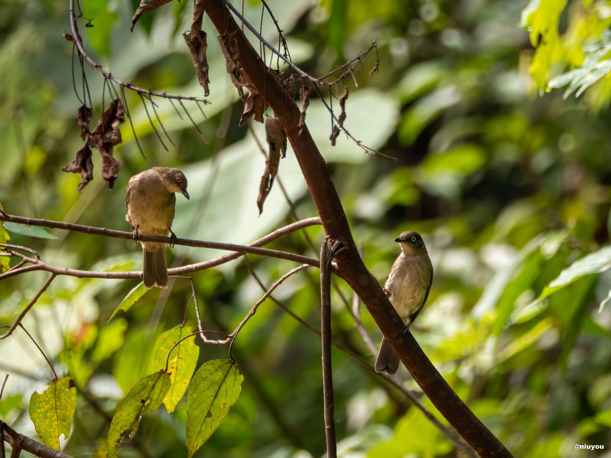 红眼褐鹎(左)与白眼褐鹎(右)是森林中常见的鹎族。(图片来源:作者)