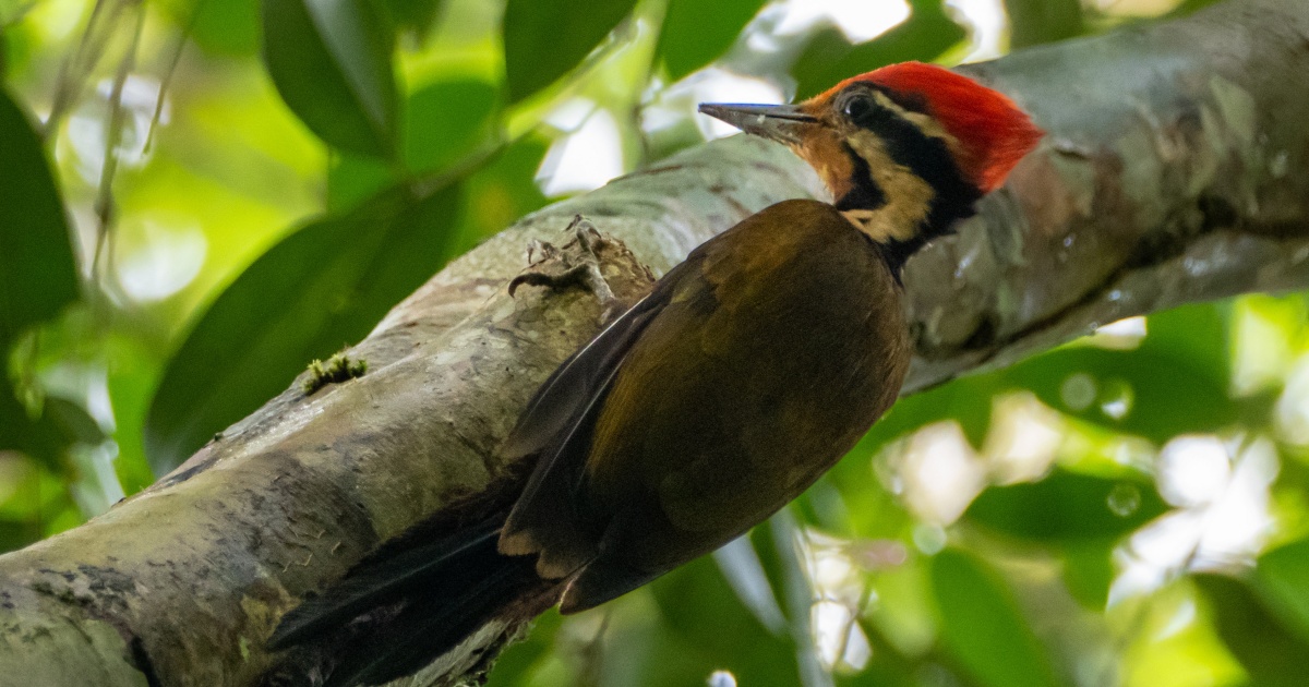 其实这也是因为林鸟中啄木鸟相对容易被发现。对比鸣禽的悦耳歌声,啄木鸟的鸣叫基本上就像走音的喇叭,相当吵闹,红翅绿背啄木鸟(Chrysophlegma miniaceum)喜欢单音节呼唤,其他如红翅绿啄木鸟(Picus puniceus)啊斑喉绿啄木鸟(Chrysophlegma mentale)啊,还有巨大的大灰啄木鸟(Mulleripicus pulverulentus)的叫声,都是高频的嘎嘎嘎嘎,让人很难不注意。