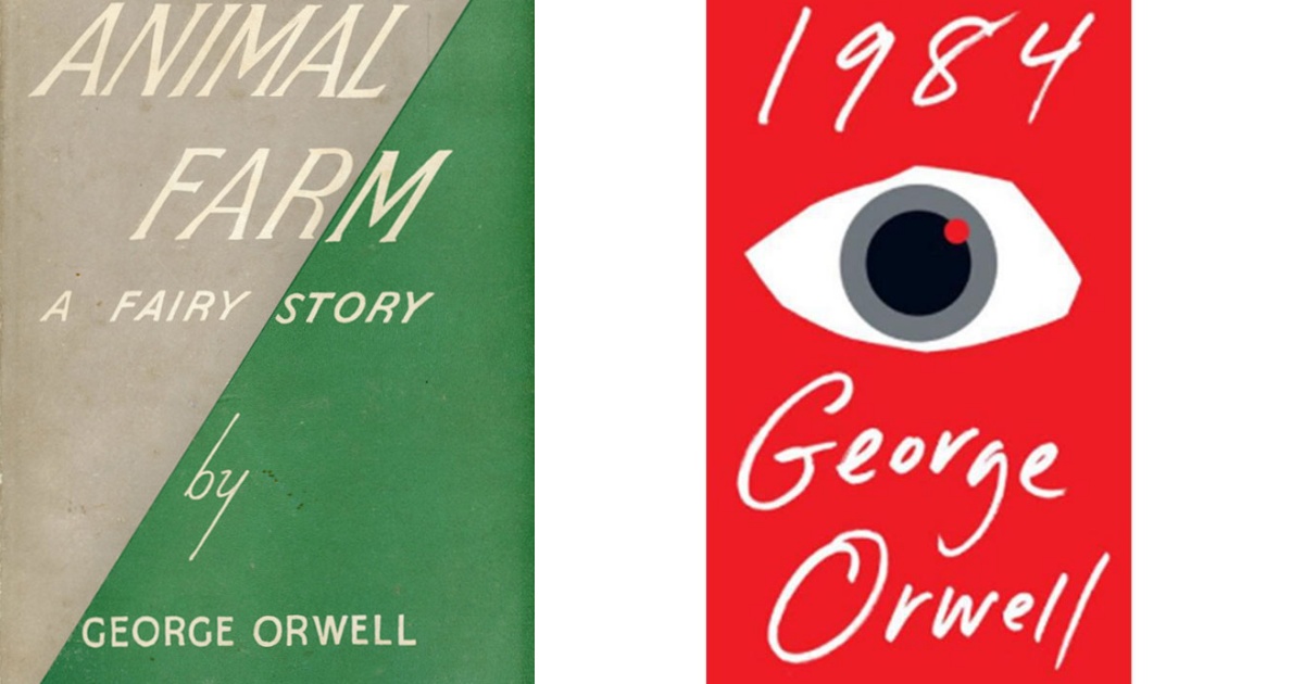 《动物庄园》和《一九八四》这两部知名政治小说的情节虽为虚构,奥威尔却能够将个人的政治观点与之融合而不令人感觉突兀。他最为人著称的,就是《动物庄园》里面的“四条腿好,两条腿坏”(four legs good, two legs bad)这句话,背景是猪只为了集结所有动物对抗圈养它们的人类而想出来的条例,其实是思想控制的手段。奥威尔的书写虽然是为了影射当时(1945年)的苏联,对比中国共产党建政以后发动的各类政治斗争,以“红五类“和“黑五类”之类的阶级划分撕裂群众,竟也毫无违和之处。