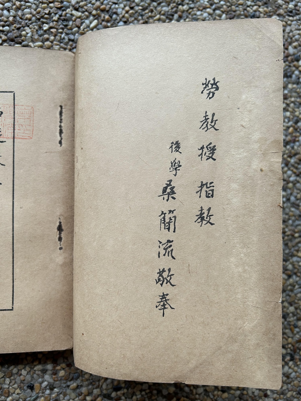 桑先生墨迹:"劳教授指教,后学 桑简流敬奉"。(图片来源:作者提供)