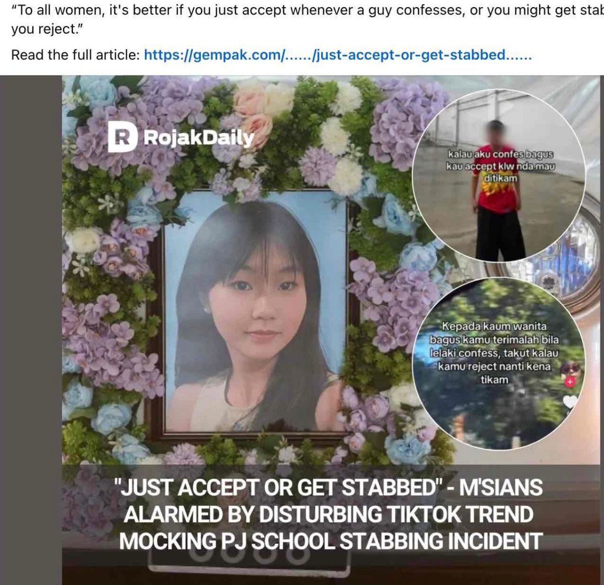 有一部分青少年已经在TikTok上开启“敢拒绝我就杀了你”类型的“玩笑”。(图片来源:RojakDaily脸书)