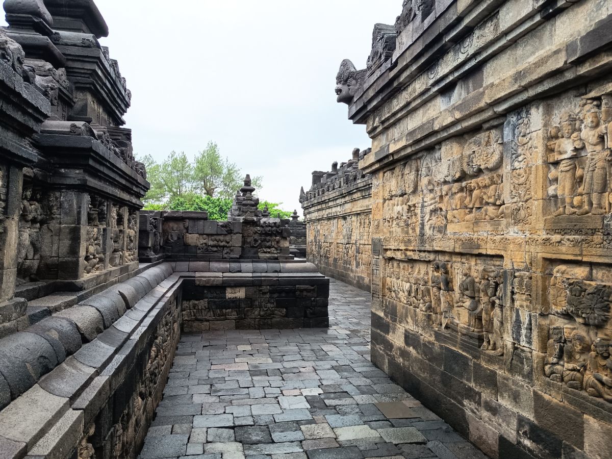 我抵达那里时,细雨纷飞,远望婆罗浮屠,朦胧间自有几分神秘。登临片刻,略览遗迹,旋即乘马车离去。