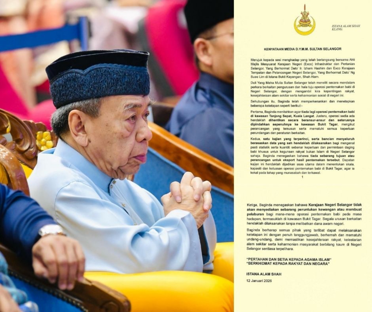 然而,在2026年1月10日及12日,雪兰莪苏丹殿下先后发表两道措辞强硬的御令,成为整起事件的重要转折点。御令的核心内容,是丹绒士拔一带的养猪活动必须立即开始逐步停止,并全面迁移至武吉达卡。