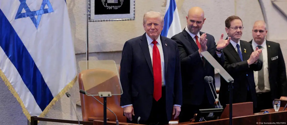 特朗普13日现身以色列国会致词(图片来源:德国之声)