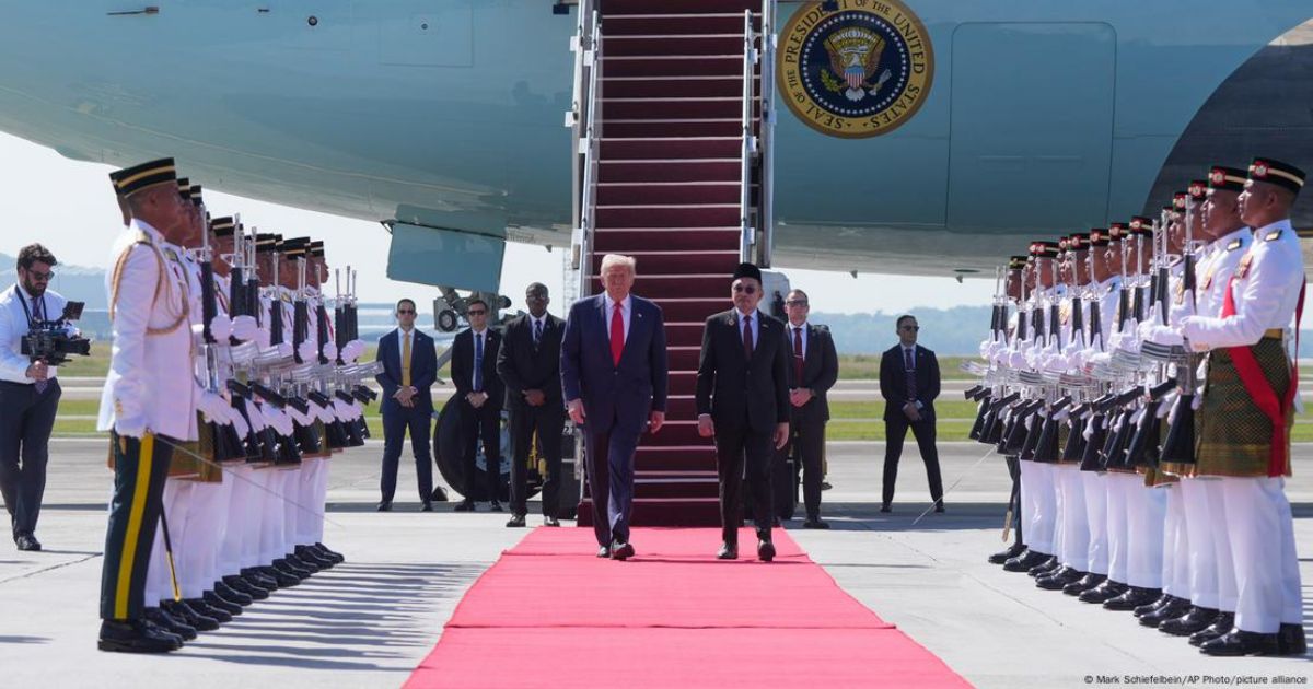 特朗普在马来西亚与总理安瓦尔·易卜拉欣签署了贸易和矿产协议,并与他一同乘坐被称为“野兽”的装甲凯迪拉克车。他还在中途加油停留期间会见了卡塔尔领导人,卡塔尔是他主导的加沙停火协议的担保国之一。他还与巴西总统卢拉进行了会面,以改善与这位左翼领导人的关系。