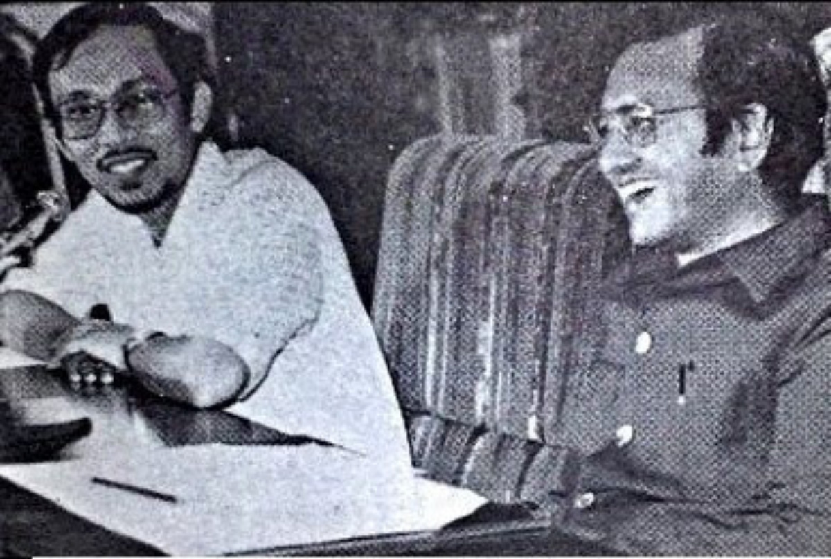 1982年,安华(左)在马哈迪(右)招揽下出人意料地加入长期执政的巫统,令许多人感到震惊。
