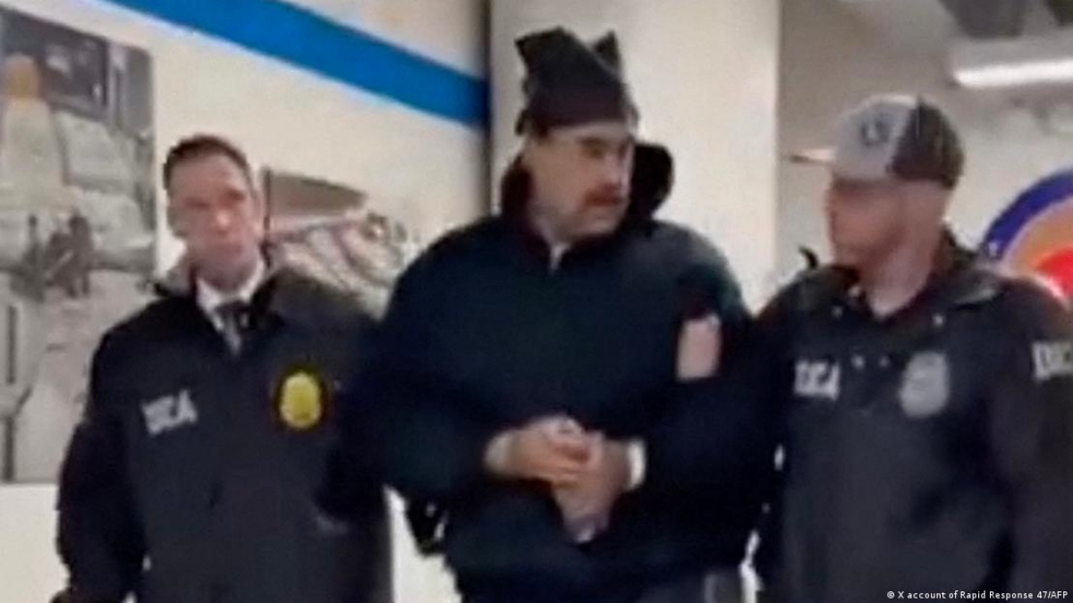 63岁的尼古拉斯·马杜罗和他的妻子西莉亚·弗洛雷斯(Cilia Flores)周六在美军特种部队在委内瑞拉首都加拉加斯的一次突袭行动中被逮捕。美军直升机先将他们运送到一艘美国海军舰艇上,然后用直升机送至纽约,经停关塔那摩美军基地,最后再由大批警力将他们押送至纽约布鲁克林的拘留中心。白宫在X平台上发布的一段视频显示,马杜罗戴着手铐,穿着拖鞋,在多名美国缉毒局人员控制下,缓步走过一条长廊,地毯上印有美国“缉毒局纽约分局”的大写英文首字母。马杜罗向现场人员说“晚安”以及“新年快乐”。