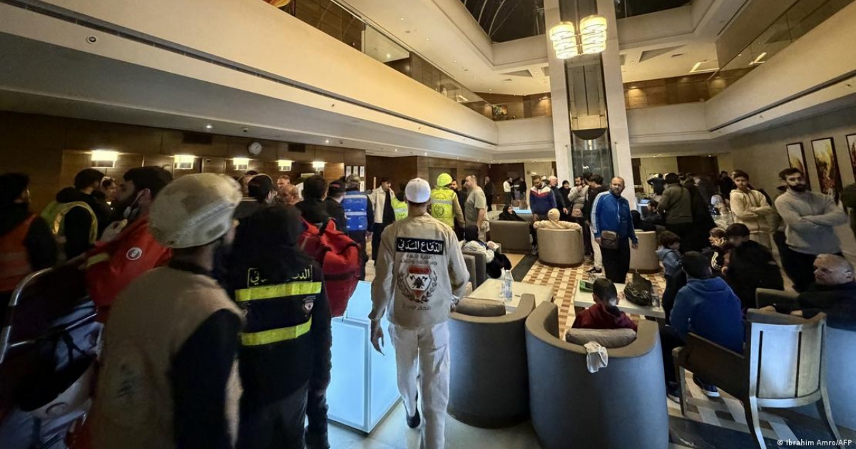 贝鲁特酒店Ramada遭以军袭击后,救援人员抵达现场。(图片来源:德国之声)