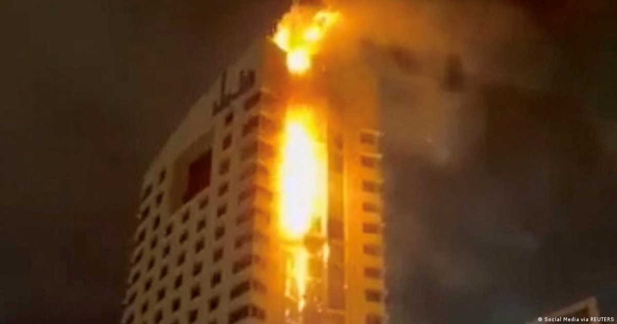 科威特一座高层建筑被无人机击中起火。(图片来源:德国之声)