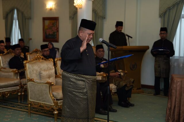 阿布峇卡(图)宣誓为新任玻州大臣。(图片来源:玻州大臣办公室)