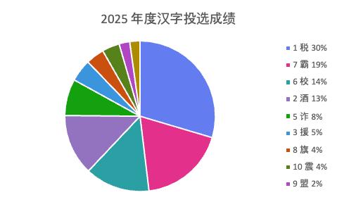 “2025年马来西亚年度汉字”在经过民众踊跃提议后,共有十大汉字入围,分别是——税、酒、援、油、诈、校、霸、旗、盟、震。经过为期17天的公开投选,最终由“税”字脱颖而出,当选为2025年马来西亚年度汉字。