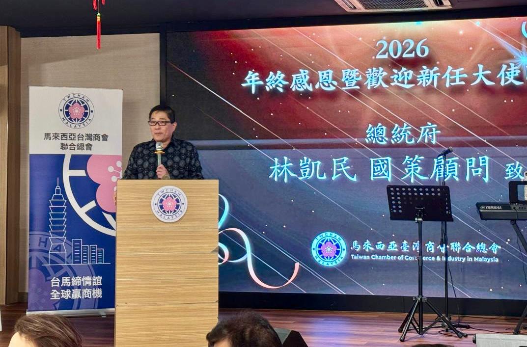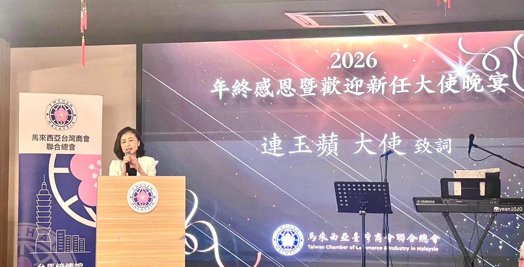 马来西亚台湾商会联合总会日前举行“2026年终感恩暨欢迎新任大使晚宴”,多位来自台马两地的政经要角、台商领袖与侨界代表齐聚一堂,在年终聚首之际,为台马关系与经贸交流增添象征意义。