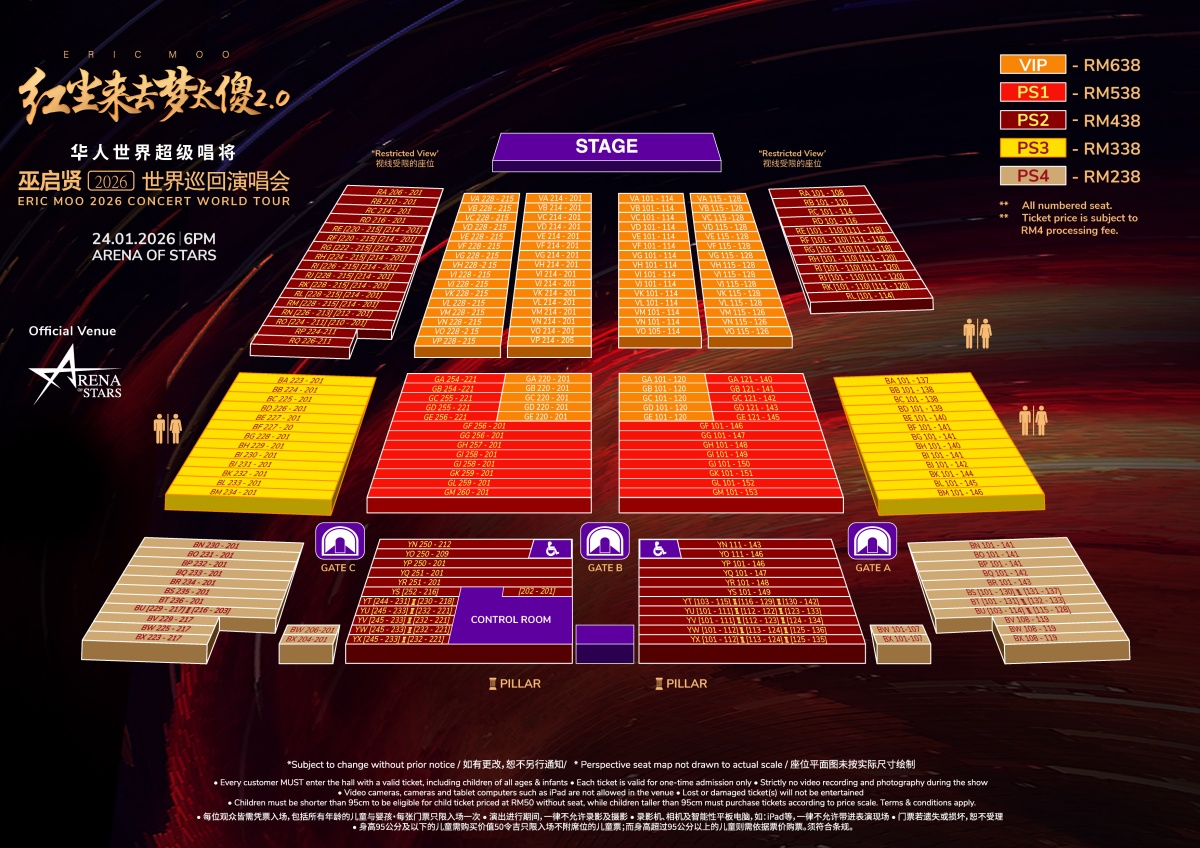 票价:VIP RM638 | PS1 RM538 | PS2 RM438 | PS3 RM338 | PS4 RM238  (未加票务手续费)