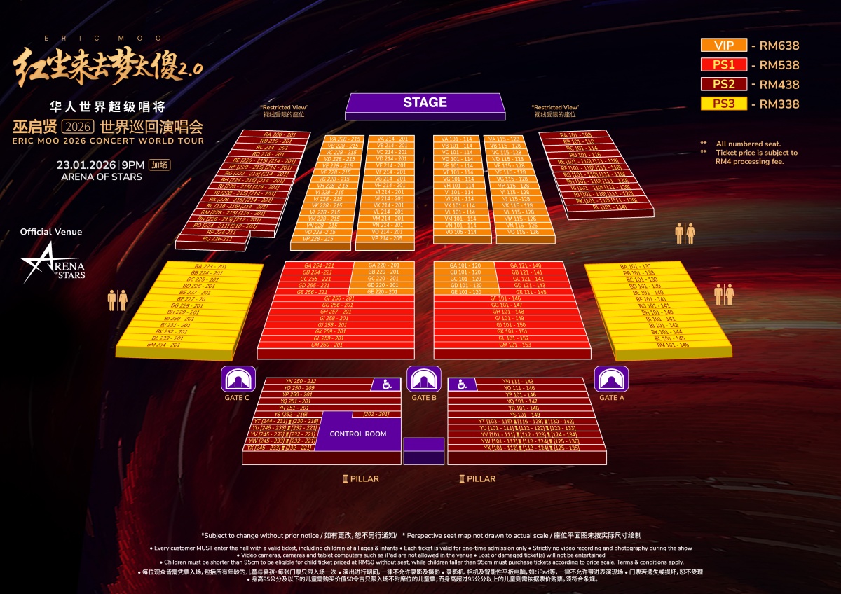 经典不止一夜!这一次,别再次错过亲临现场,聆听数代人记忆中嗓音的机会!门票价格分为638令吉(VIP)、538令吉(PS1)、438令吉(PS2)及338令吉(PS3),所有票价未包含4令吉手续费。早鸟优惠将于2026年1月7日中午3时开售,VIP至PS3票位可享25%折扣,数量有限,售完即止。