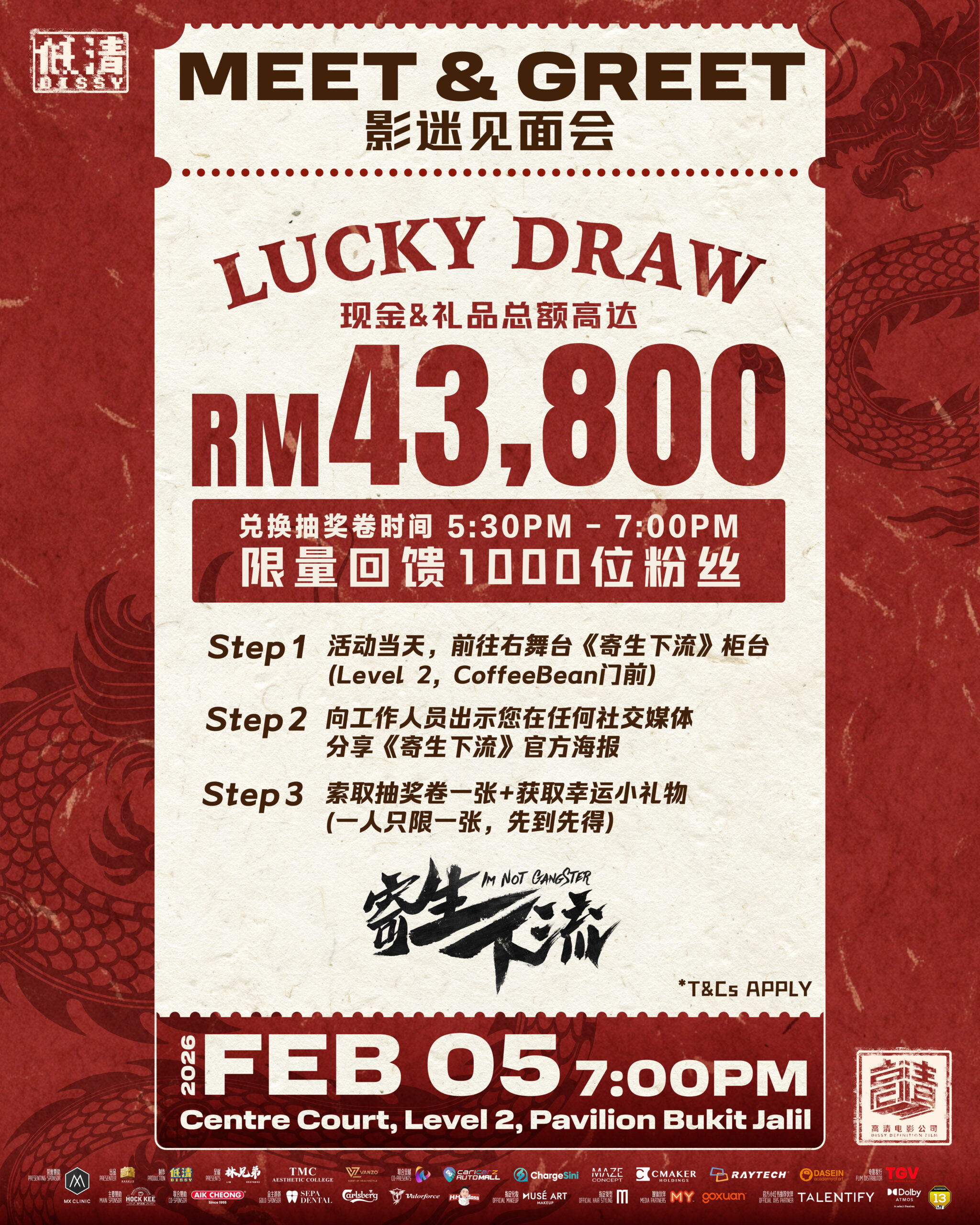 此次影迷见面会不仅是简单的宣传活动,更被形容为一场“福利满满”的大型入社现场。主办方现场准备总值RM43,800的豪华抽奖礼品,回馈到场影迷。多位演员也将亲临现场,与观众面对面交流,分享拍摄点滴。