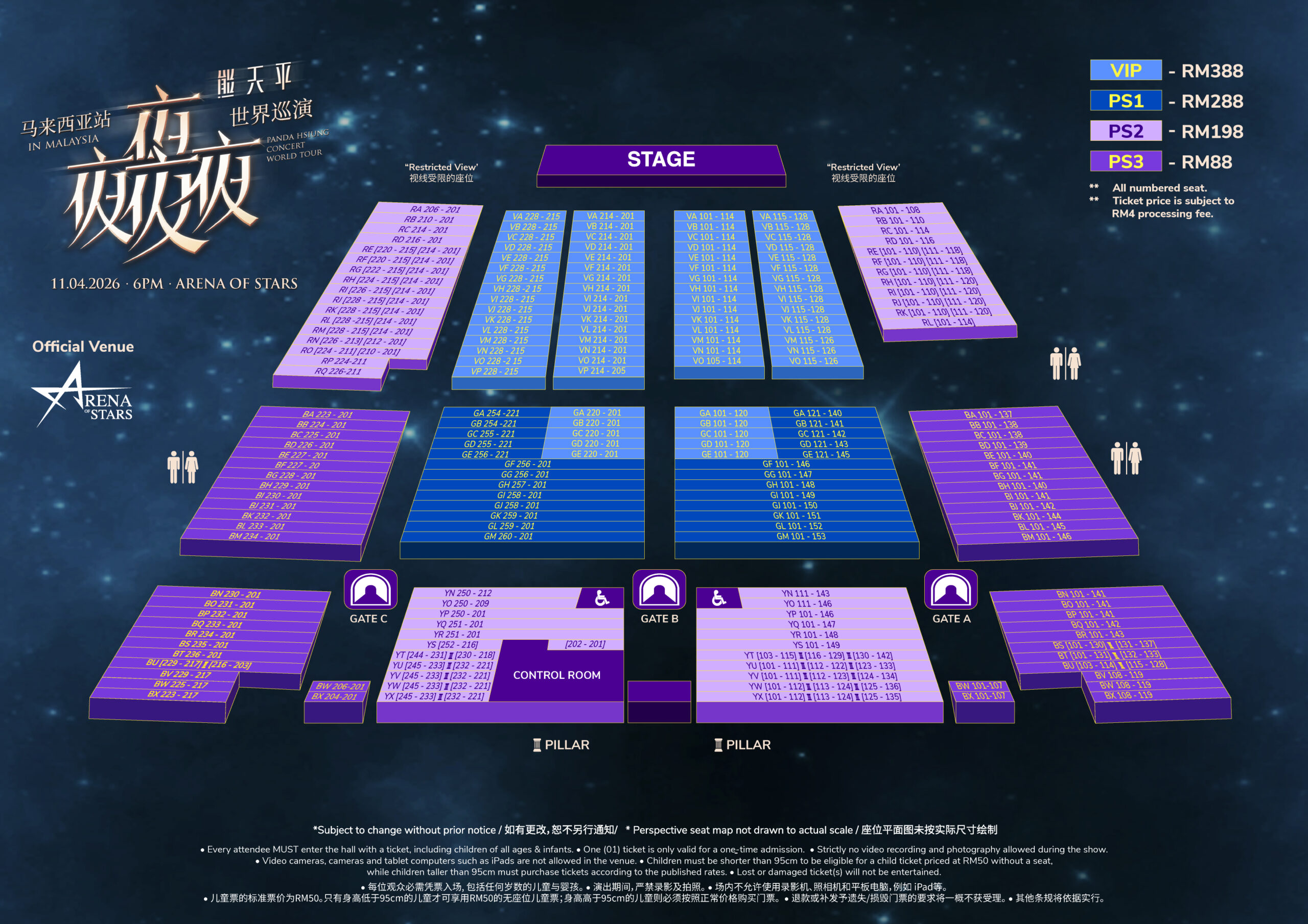票价:VIP RM388 | PS1 RM288 | PS2 RM198 | PS3 RM88  (未加票务手续费)
