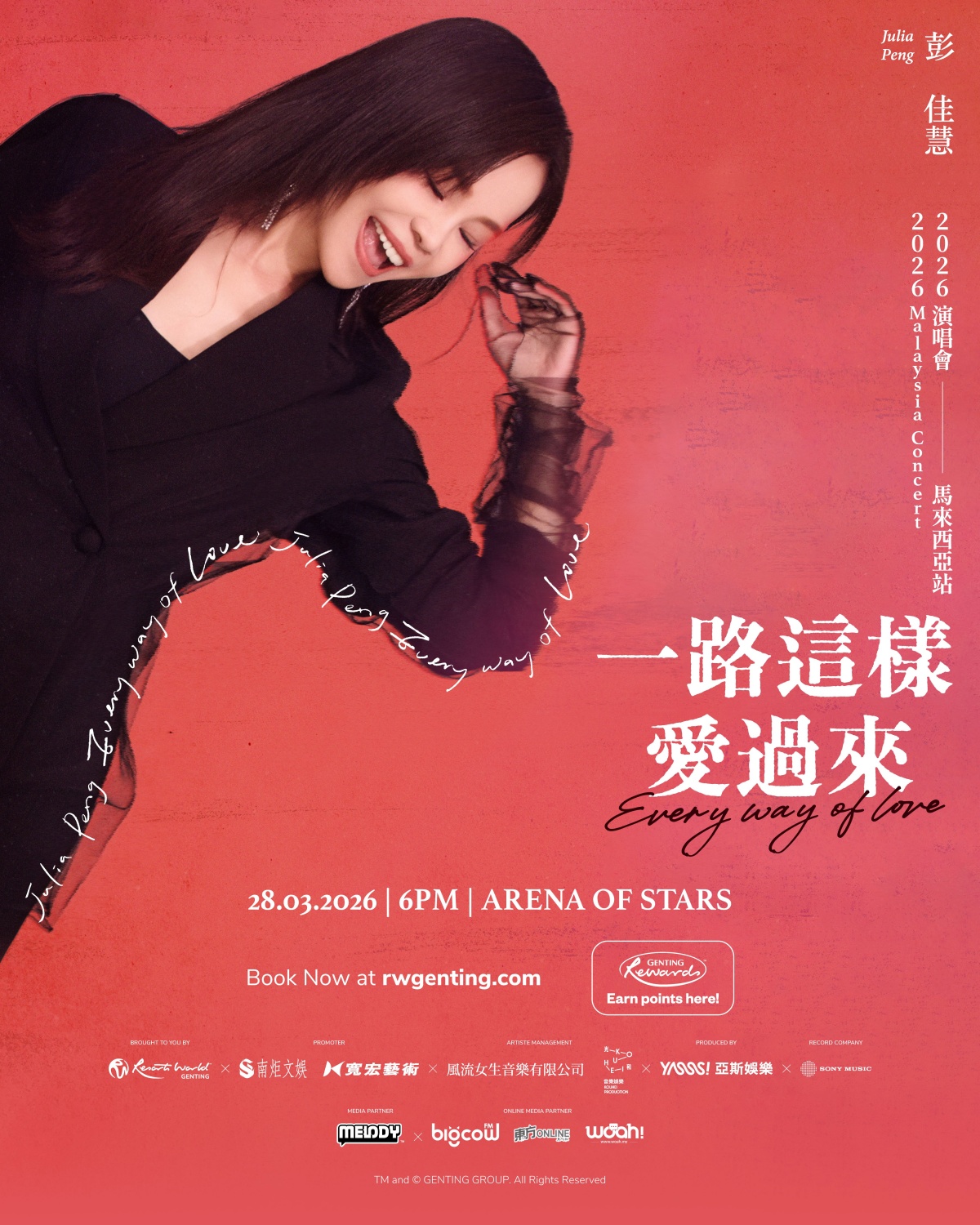 华语乐坛实力唱将彭佳慧将于2026年3月28日傍晚6时,在云顶世界云星剧场带来2026《一路这样爱过来》演唱会马来西亚站。这不仅是她巡演的重要一站,更是与马来西亚歌迷之间一场深刻的音乐重逢——无论时光如何变迁,只要歌声响起,感动依旧。