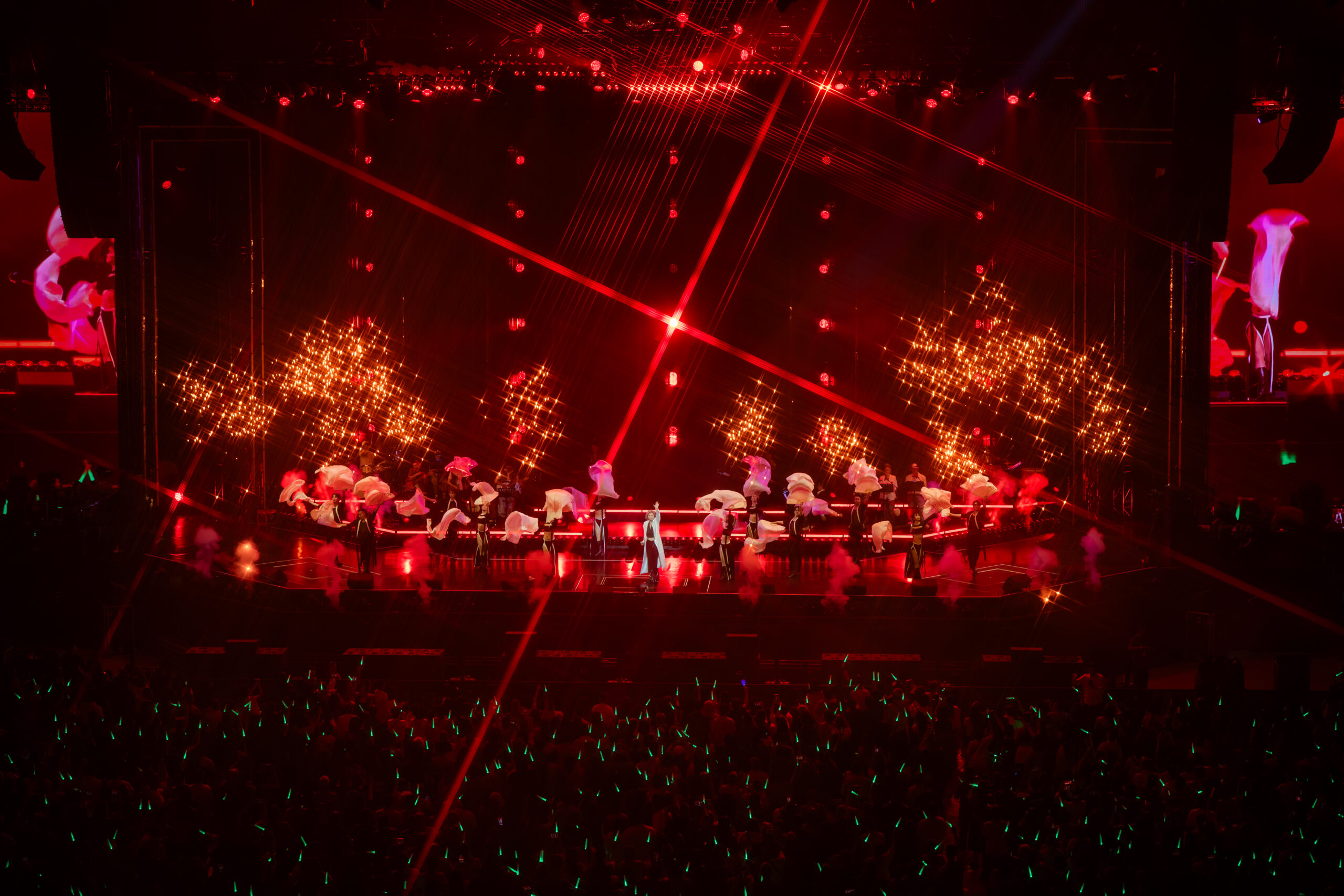 叶蒨文的个人表演同样掀起高潮。她不仅带来《我要你的爱》、《真心真意过一生》、《信自己》及《情人知己》等经典歌曲,还特别献唱全球热唱的《APT》。在舞蹈员的带动与教学下,台下观众纷纷跟着节奏起舞,现场气氛瞬间化身大型蹦迪现场。