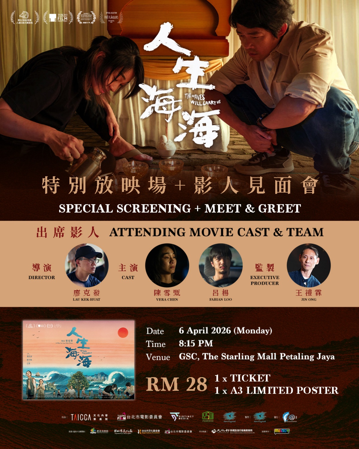 电影《人生海海》特别放映场与影人见面会将于4月6日(一),在八打灵再也GSC The Starling Mall举行,并于晚上8时15分展开电影抢先放映。影迷除了可优先观赏电影外,映后更有机会与主创团队近距离互动交流,包括导演廖克发、监制王礼霖,以及演员陈雪甄、吕杨,分享幕后创作点滴与拍摄趣事。