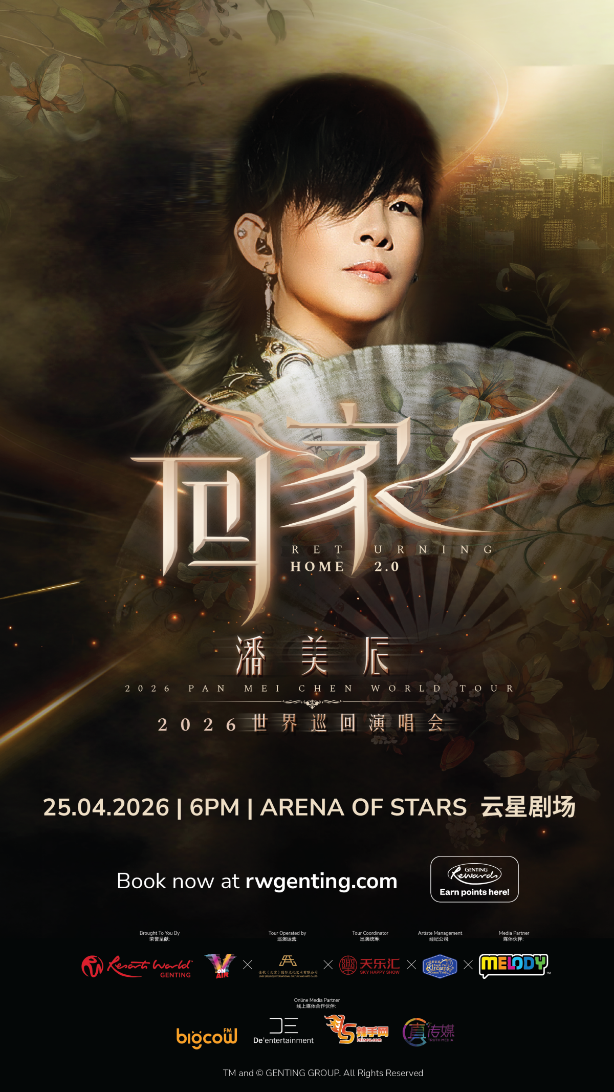 潘美辰回来了!华语乐坛传奇巨星潘美辰将于2026年4月25日携全新升级的《回家2.0》2026世界巡回演唱会重磅回归云顶世界云星剧场的舞台!