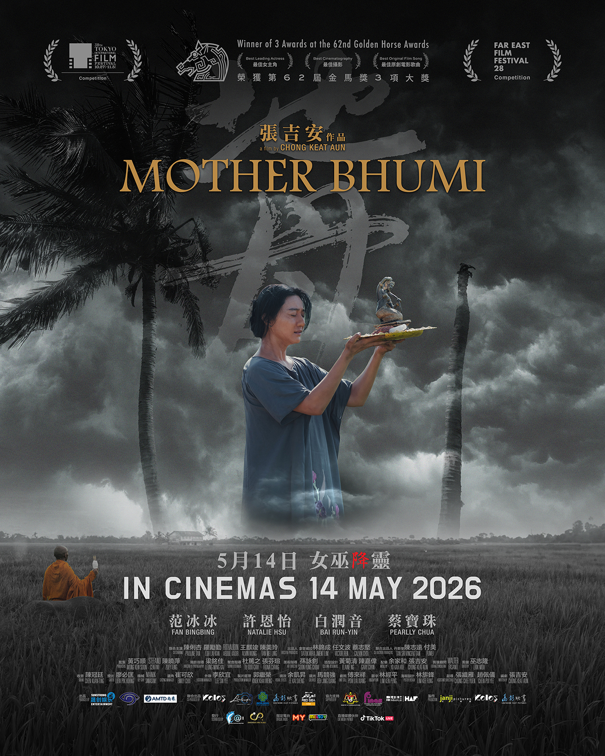 《地母》将于5月14日全马上映,影片融合在地文化与神秘色彩,改编自吉打稻乡流传已久的女巫降灵传说。此电影未映先热,备受关注。本片由金奖导演张吉安编导,国际影后范冰冰演出,荣膺第62届⾦马奖3项⼤奖,创下马来西亚本⼟电影在金马奖荣誉史上佳绩。