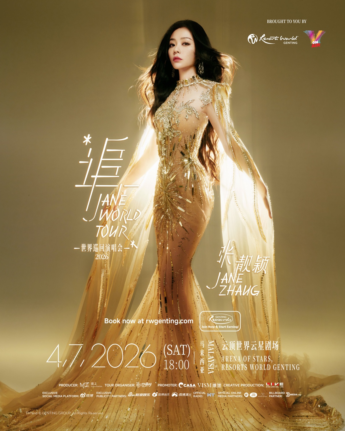 华语流行乐坛歌手张靓颖将于2026年7月4日(星期六)傍晚6时,在云顶世界云星剧场举行《追》张靓颖世界巡回演唱会马来西亚站,为本地歌迷带来其出道以来的音乐代表作与最新作品。