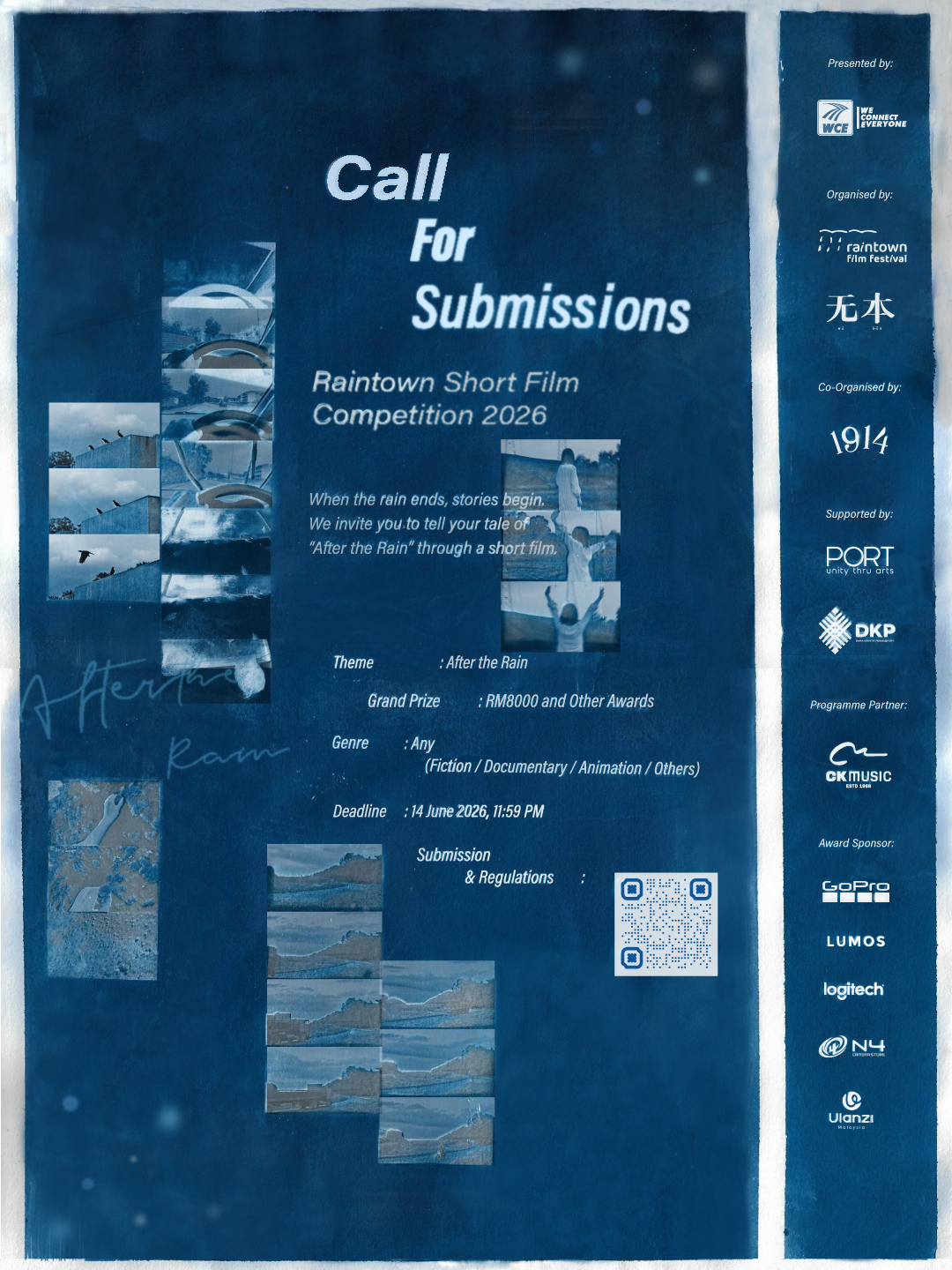 《雨城短片大赛2026》截止日期为6月14日。届时,20部入围短片将在电影节期间公开放映,最佳短片将获RM8,000现金奖。其他奖项类别将由多个品牌提供赞助,包括CK Music、GoPro、Logitech、N4 Camera Store Sdn Bhd、Ulanzi及Lumos等,以鼓励电影人持续创作。