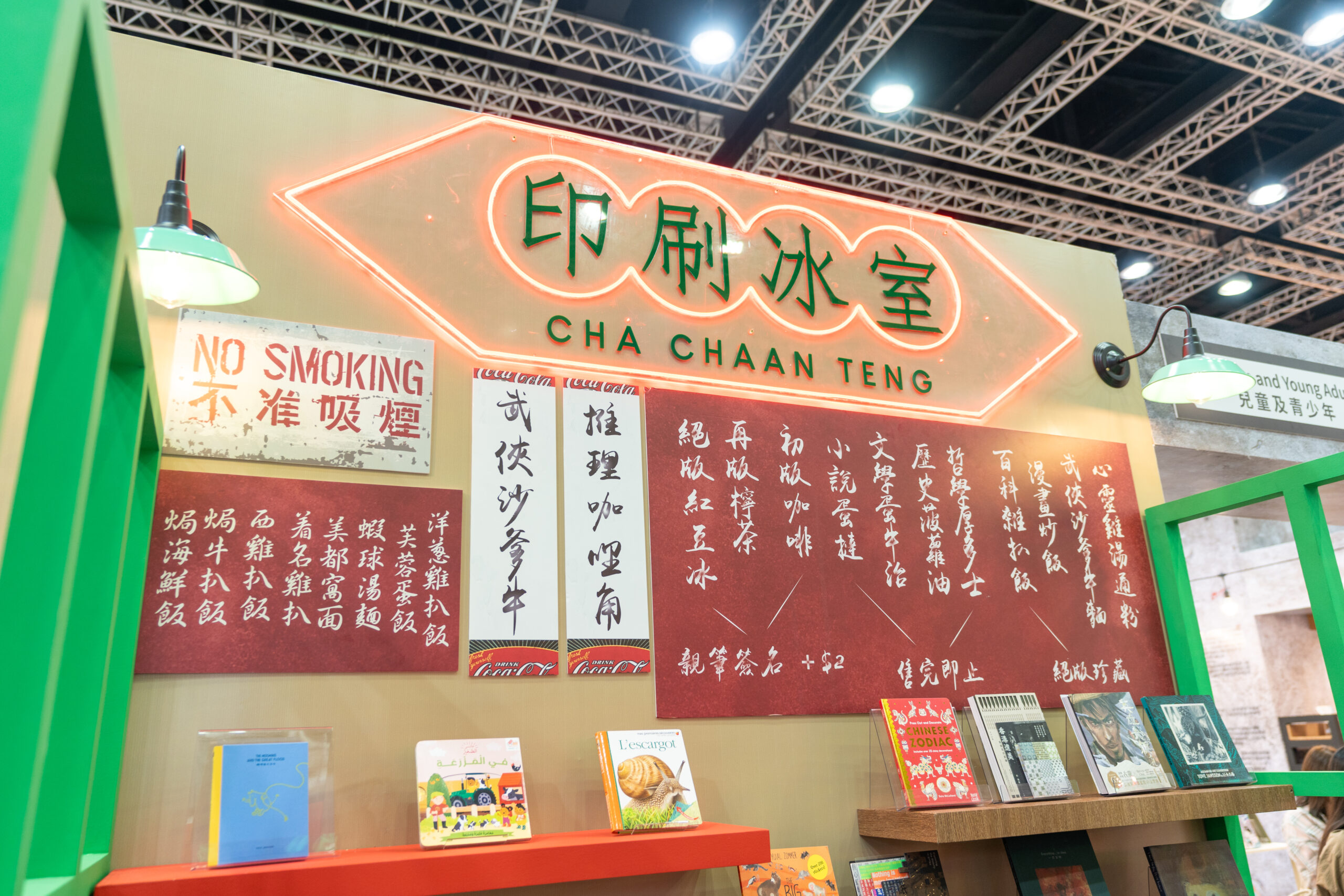 展馆内结合霓虹灯招牌、旧式书店、当铺、冰室卡位及候车站等经典港式视觉元素,营造浓厚的城市氛围,让读者仿佛置身香港街头,在选购图书的同时感受文化魅力。