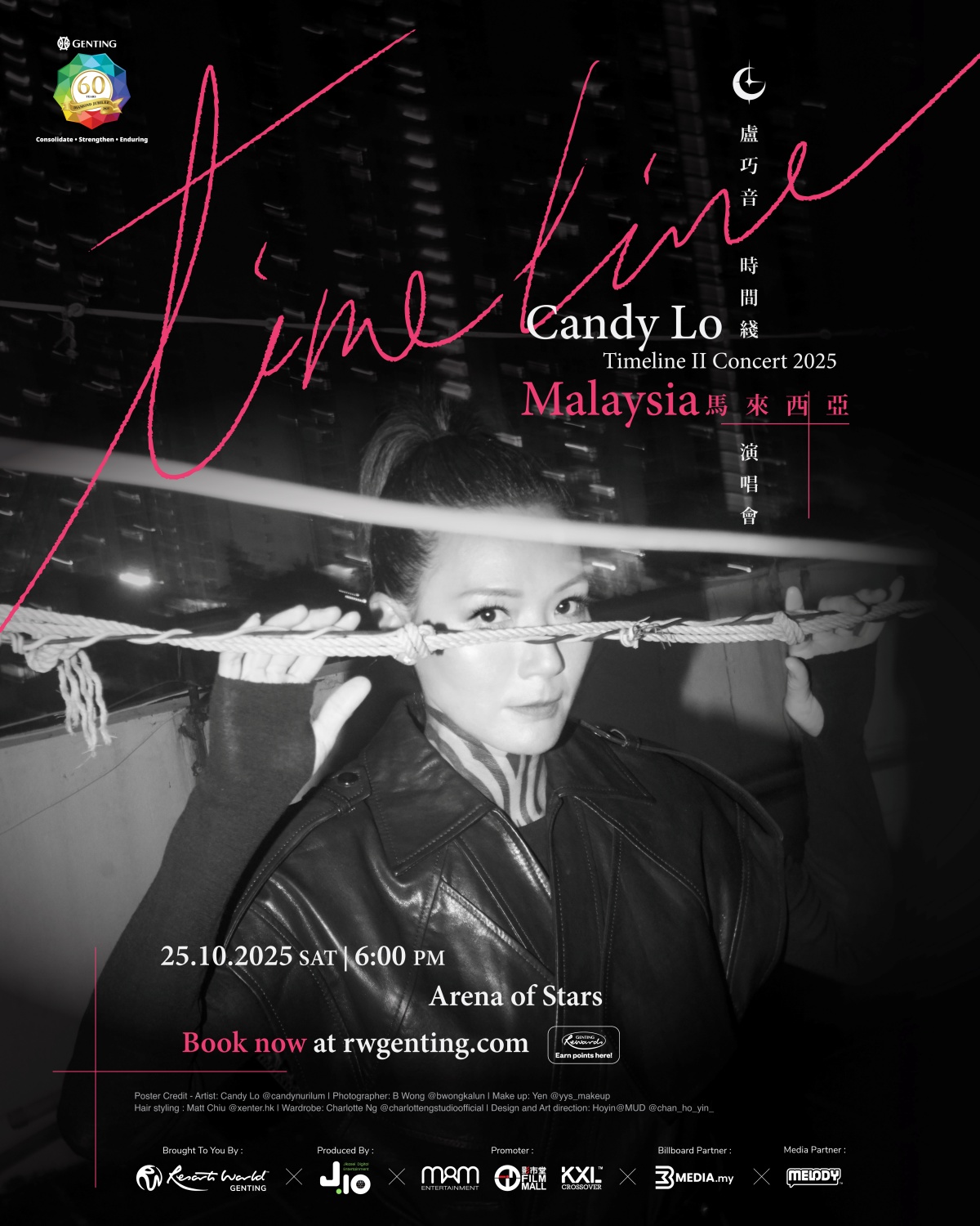 香港音乐才女卢巧音即将于2025年10月25日(六)傍晚6时,登陆云顶世界云星剧场,举办《时间线II演唱会2025—马来西亚站》,以音乐为笔,为乐迷细腻描绘人生的流转与感悟。