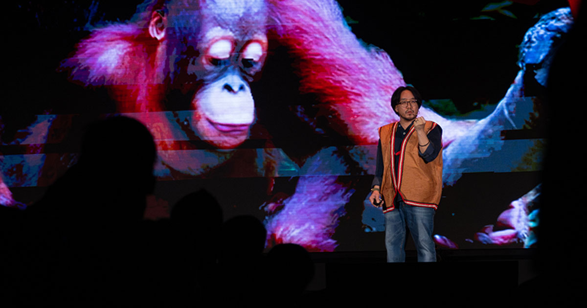 林泽昇对人猿的兴趣,源自一种跳脱人类视角的觉察。(图片来源:TEDx茨厂街)