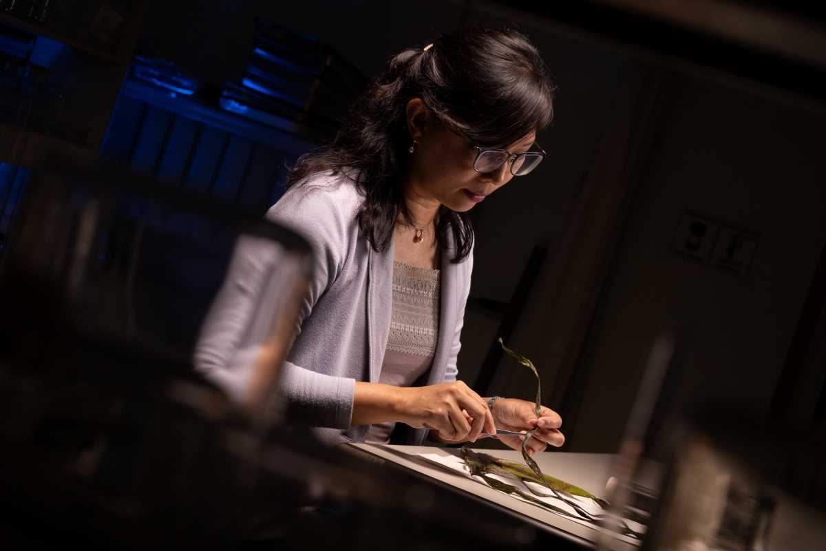 采访地点设在马来亚大学的地理实验室。踏入其中,首先映入眼帘的是一整桌保存完好的海草标本,全都由黄莲心博士精心收藏。这次访问就TEDx茨厂街年会采访,她特地将它们重新取出,逐一分享背后的故事。