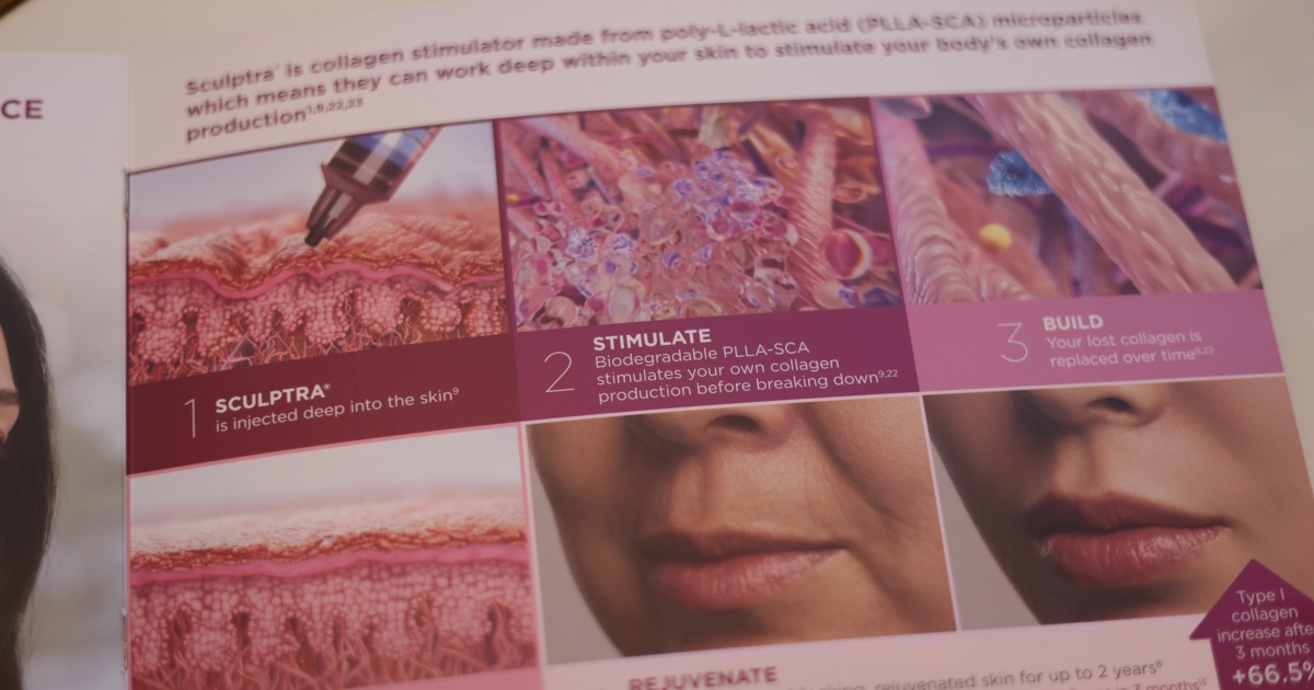 童颜针(Sculptra)在市面上已经三十年,主要成分是聚左旋乳酸(Poly-L-lactic acid,PLLA)。聚左旋乳酸是一种可被人体自然分解代谢的高分子材料,具有促进胶原蛋白新生、帮助组织再生的特性。陈国建医生解释,当富有聚左旋乳酸的童颜针注射到皮肤内,就能促进骨胶原,让注射部位更加饱满,借此恢复到年轻时的状态。