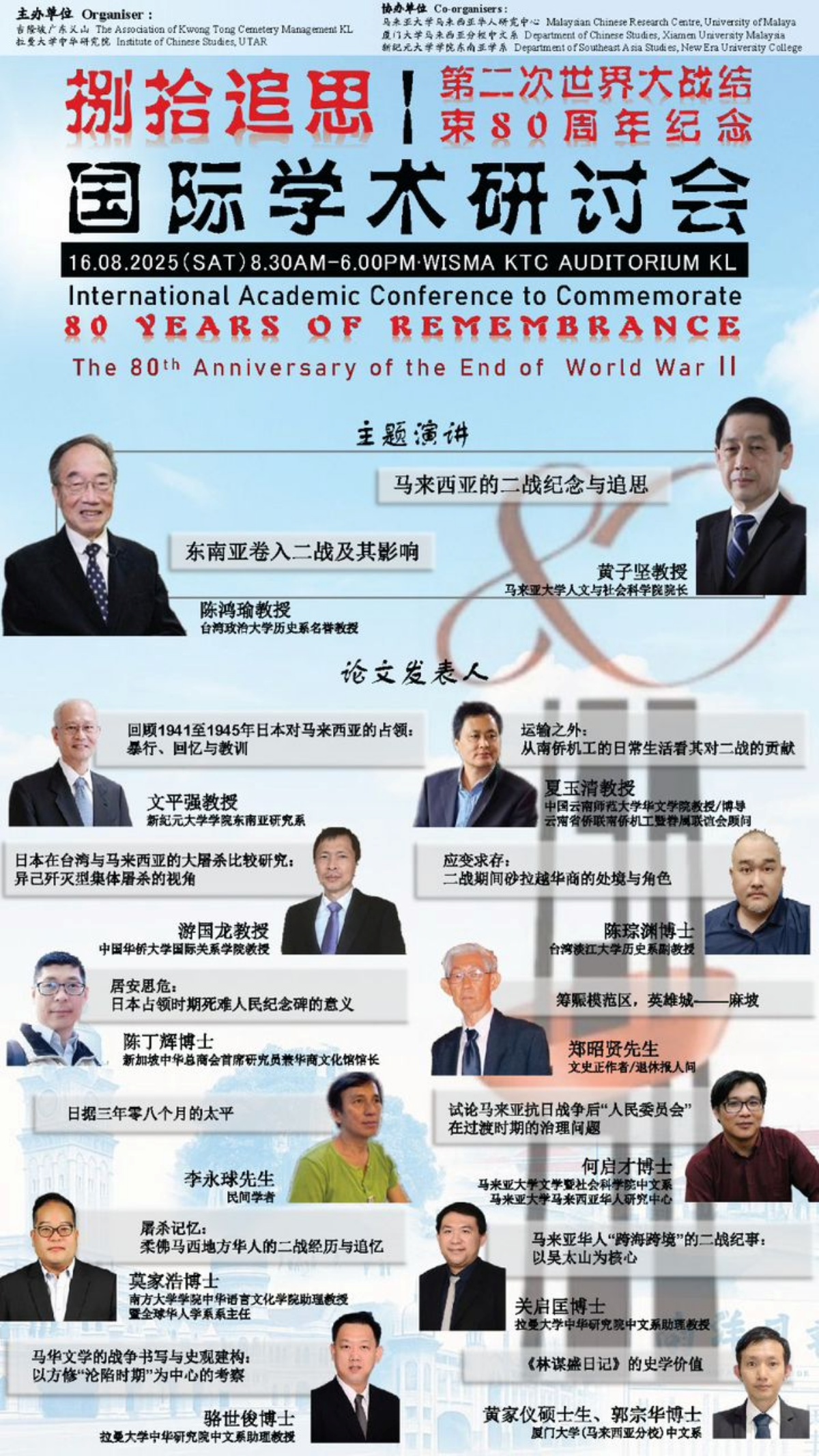 为了纪念义山创立130周年,同时也是第二次世界大战结束80周年,吉隆坡广东义山在2025年8月14至16日一连举办三天的“13080”纪念系列活动,以及举办第二次世界大战结束80周年纪念国际学术研讨会,汇聚海内外14名学者,针对二战历史进行专题演讲以及交流。