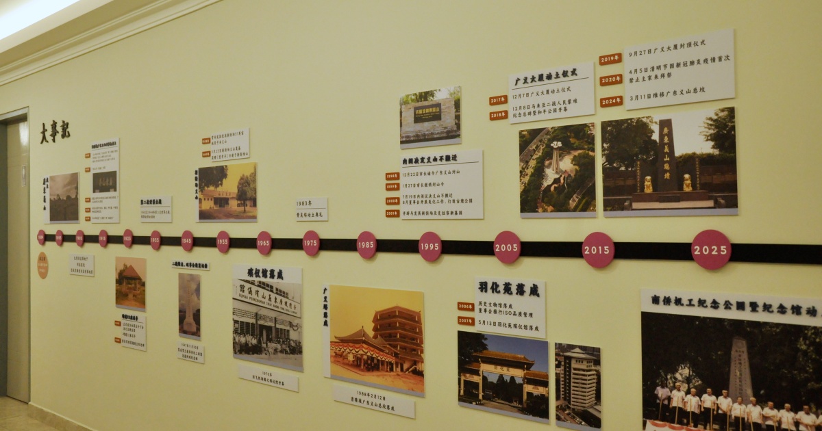 踏入吉隆坡广义大厦,可以看见是一座发展得相当有规模的民间组织,俨然不似外界对义山“凄凉、杂草丛生”的印象。办公室门外有一条被称作”时光走廊”的走道,在那里,记载着广东义山的缘起,以及记录着创办广东义山的先贤和重要事迹。