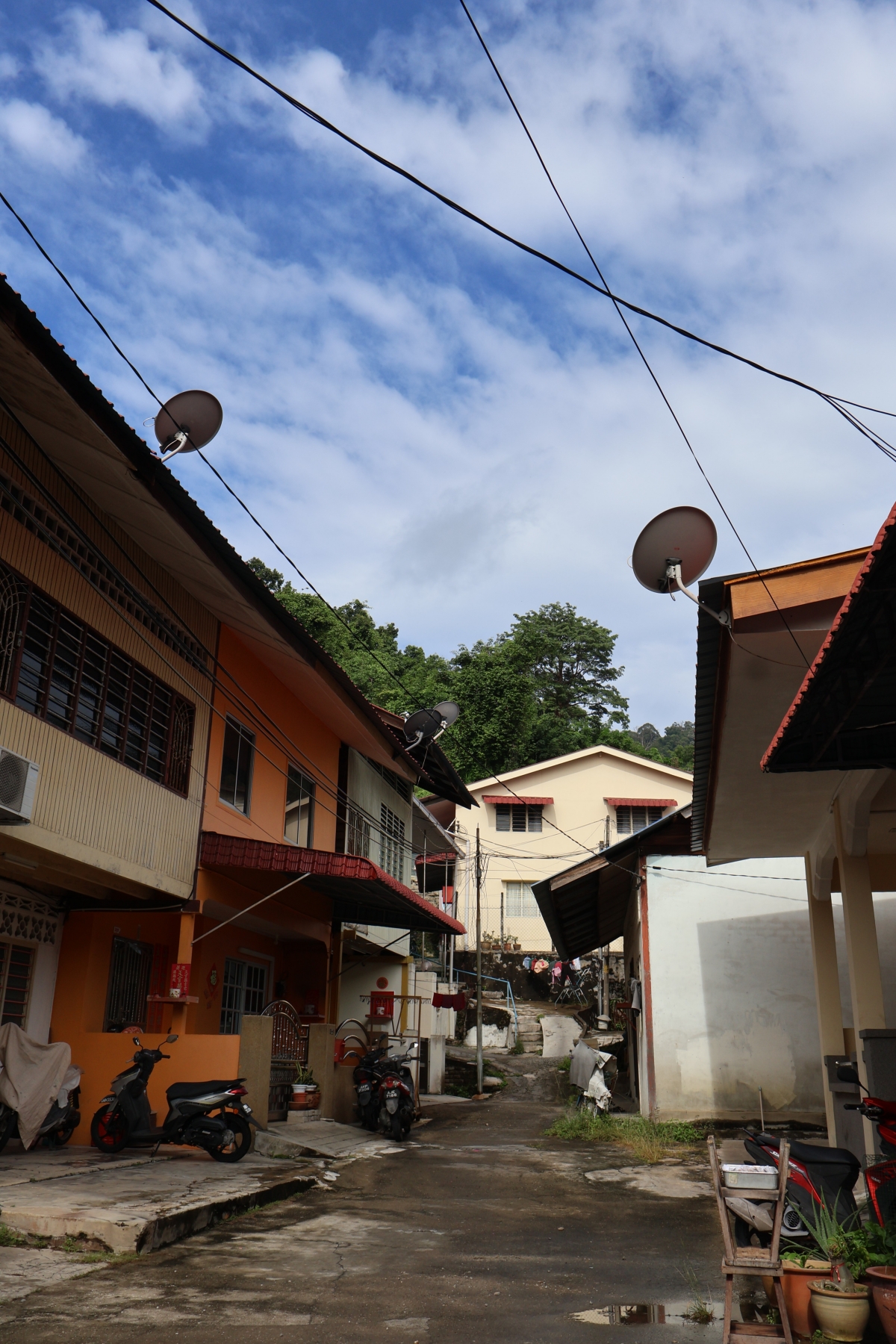 早期的邦咯岛民宅多沿海而建,后来因为土地不足,开始往山坡上发展。可见这周围的街道高低不平,许多房屋都依山而立。