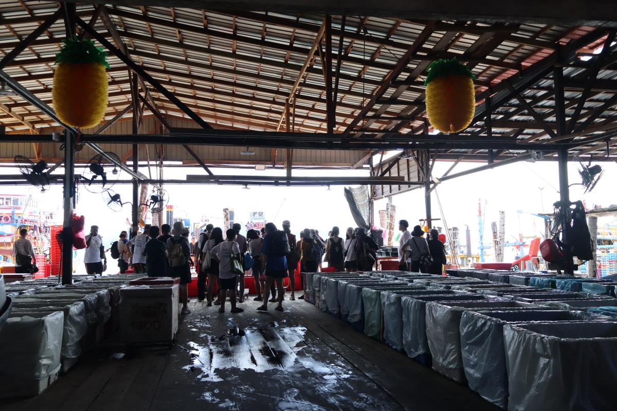 渔寮,顾名思义,是处理鱼类、停泊船只的沿海设施。“而渔寮也有先进的制冰器,可以直接生产碎冰,无需耗费多余的人力打碎冰。同时,也能看到渔工们将刚捕获的鱼类进行分类的繁忙景象。”