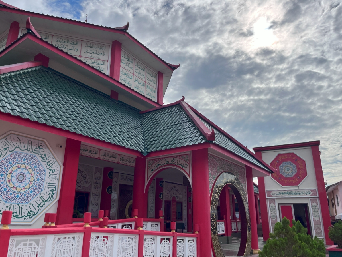 而这座具有浓厚中国风的清真寺便是慈善清真寺,整座建筑以红色与青色为主色调,象征着华人与马来文化的融合。相传,这间清真寺最初为本土性质的,后来由一位海南回教徒所改造。如今,邦咯岛共有三座类似的清真寺。游客若入内参观,必须披上长袍。