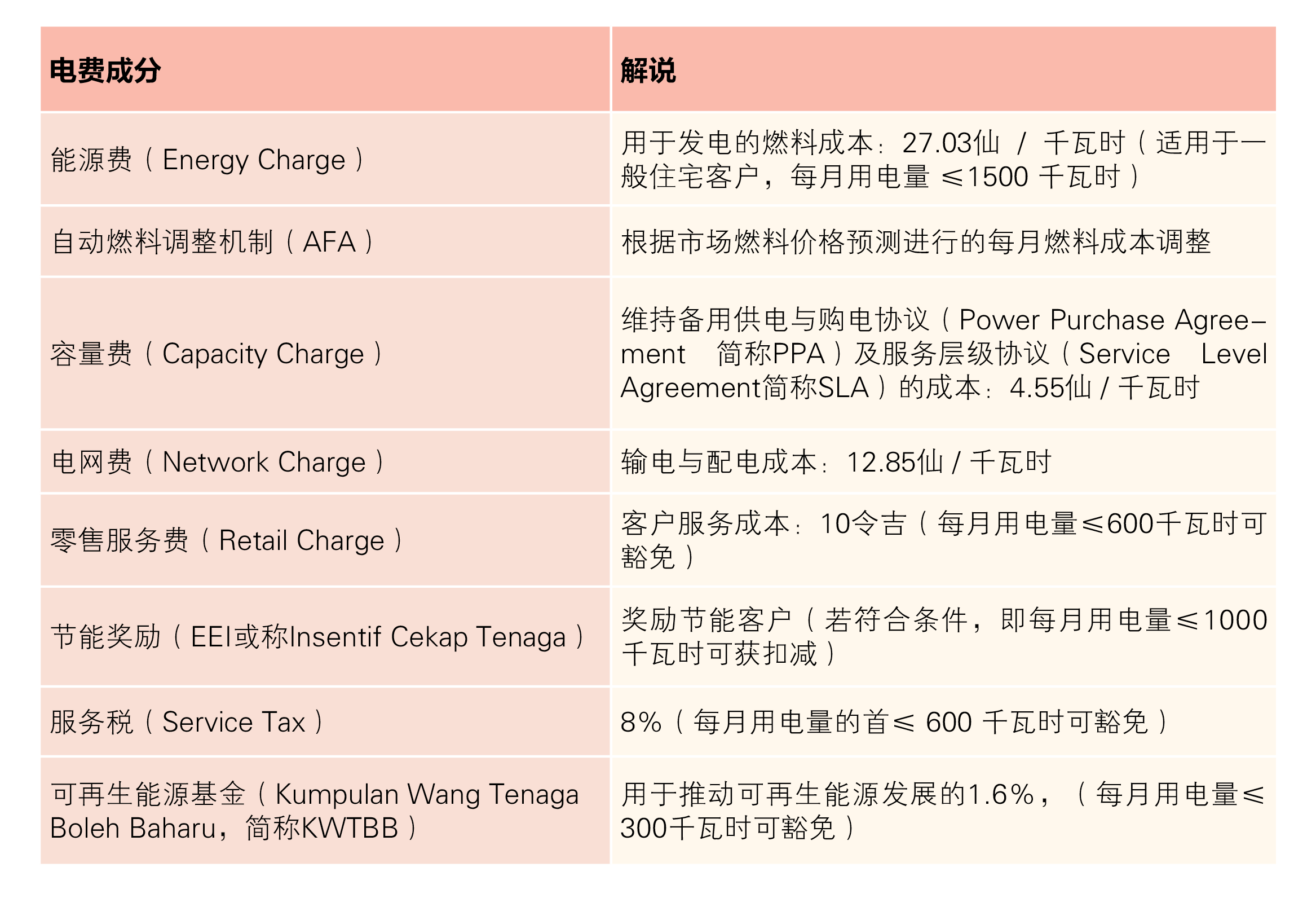 - ≤ 600 kWh/月:豁免AFA、零售服务费(Retail Charge)、8% 的服务税。